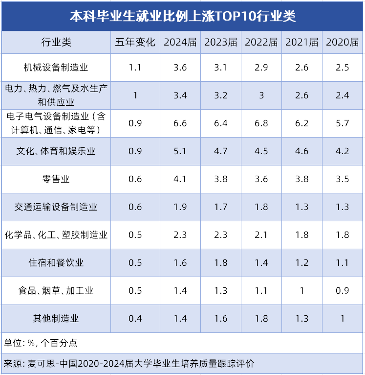 对于面对升学选择的高中生而言,专业的挑选关乎将来的职业成长轨迹。领会当下及将来的就业趋向,找准那些人才需求兴旺、能让专业选择更具前瞻性。近五年,我国本科结业生就业市场一批行业类凭仗强劲的成长动力,成为吸纳结业生的主要阵地。接下来小优将为你细致解读就业比例上涨TOP10行业类,找准适配的专业标的目的,为你的升学规划供给参考。
