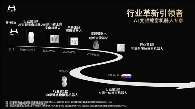 2019 年,赫特推出立异 AI 变频擦窗机械人,智能擦窗新。随后内置水箱、内置电源、三负压舱、3D 悬浮底盘等多项立异手艺,陪伴赫特DDC55pro、π10等多款产物的问世,更将以性设想沉塑擦窗体验。